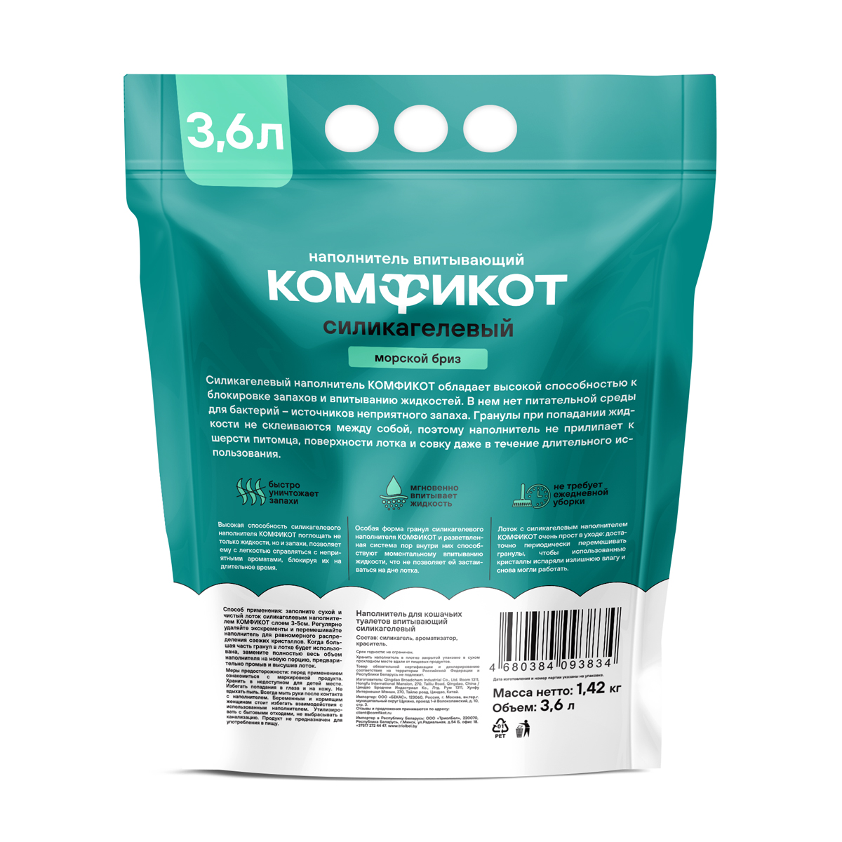 Высокая способность силикагелевого наполнителя КОМФИКОТ поглощать не только жидкости, но и запахи, позволяет ему с легкостью справляться с неприятными ароматами, блокируя их на длительное время. Особая форма гранул и разветвленная система пор внутри них способствуют моментальному впитыванию жидкости, что не позволяет ей застаиваться на дне лотка. Лоток с силикагелевым наполнителем КОМФИКОТ очень прост в уходе: достаточно периодически перемешивать гранулы, чтобы использованные кристаллы испаряли излишнюю влагу и снова могли работать. Способ применения: заполните сухой и чистый лоток силикагелевым наполнителем КОМФИКОТ слоем 3-5см. Регулярно удаляйте экскременты и перемешивайте наполнитель для равномерного распределения свежих кристаллов. Когла большая часть гранул в лотке будет использована, замените полностью весь объем наполнителя на новую порцию, предварительно промыв и высушив лоток. Состав: силикагель, ароматизатор, краситель. Масса нетто: 1,42 кг. Объем: 3,6 л.