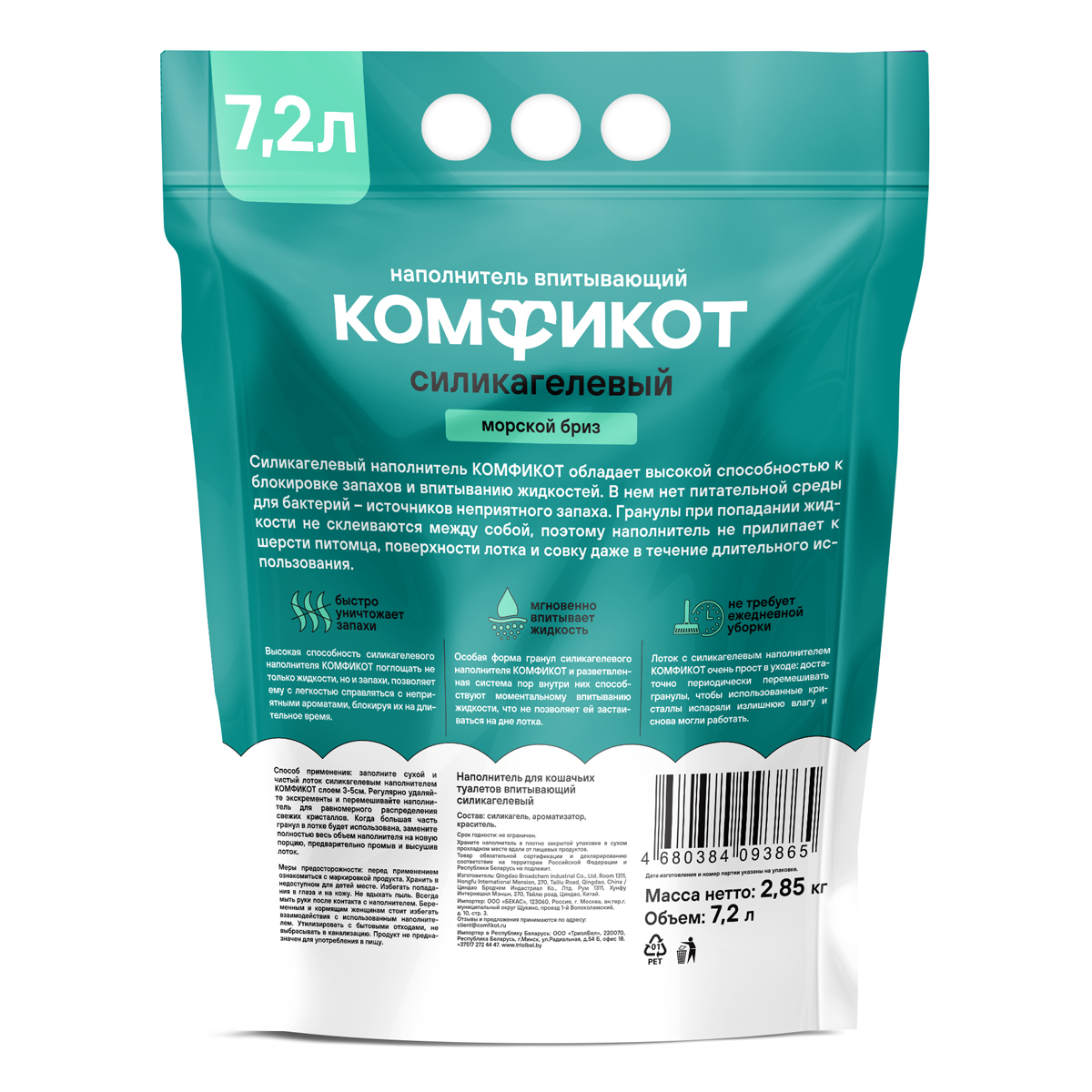 —КОМФИКОТ Наполнитель силикагелевый впитывающий морской бриз, 7,2 л