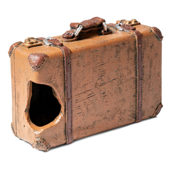 Этот функциональный и максимально реалистичный грот - незаменимый элемент для оригинального оформления любых пресноводных аквариумов, особенно для лабиринтовых рыб, а также террариумов и палюдариумов. Полый внутри, этот грот послужит дополнительным укрытием для небольших рыб или любых видов рептилий, отвечая тем самым не только за эстетику, но и принося обитателям аквариума реальную пользу. Стилизованный под винтажный чемодан, такой грот может быть использован как самостоятельный элемент декора - для оформления небольшого аквариума, так и в комплекте с другими гротами, объемными фонами и искусственными растениями - для оформления аквариума большого объема. Изготовленный из нетоксичной полиэфирной смолы, очень прочный и долговечный, удобный в эксплуатации и совершенно безвредный для аквариумных жителей, этот грот прослужит вам долгие годы, украшая собой ваш "компактный подводный мир" - на радость вам и его обитателям.