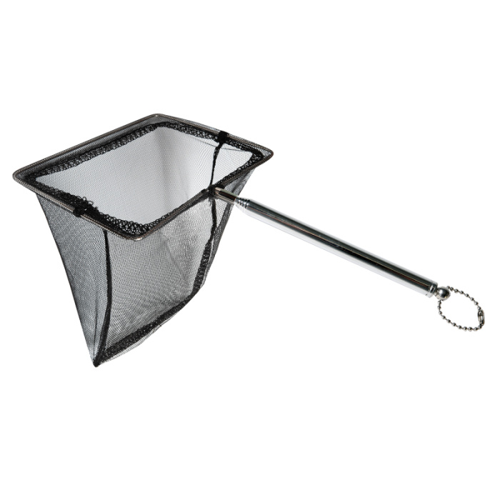 Сачок с металлической ручкой и каркасом изготовлен из синтетической сетки. Имеет удобную телескопическую ручку. Применяется для вылавливания рыб из аквариума, а также для перемещения в воде грунта и оформительских элементов.