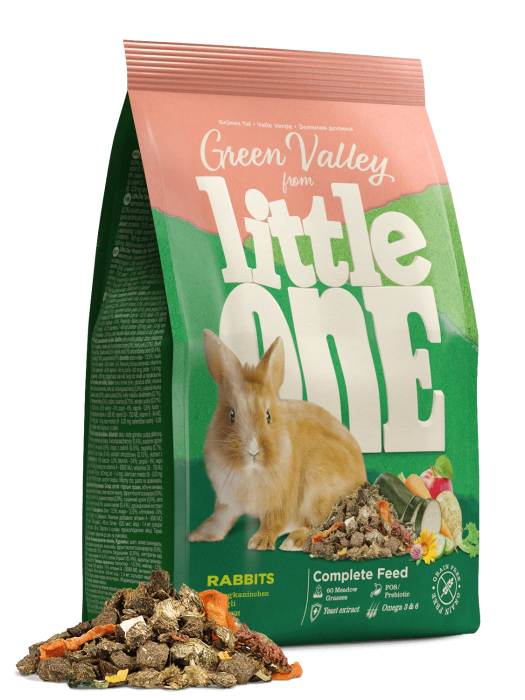 Little One корм из разнотравья «Зеленая долина» — корм для декоративных животных, в состав которого входит 60 разновидностей трав. Изготовленный с помощью специальной технологии холодного прессования, корм сохранил все витамины, минералы и другие ценные питательные вещества, входящие в состав растений. Корм богат длинными волокнами клетчатки, что обеспечит необходимый уход за зубами и правильное пищеварение у кроликов.