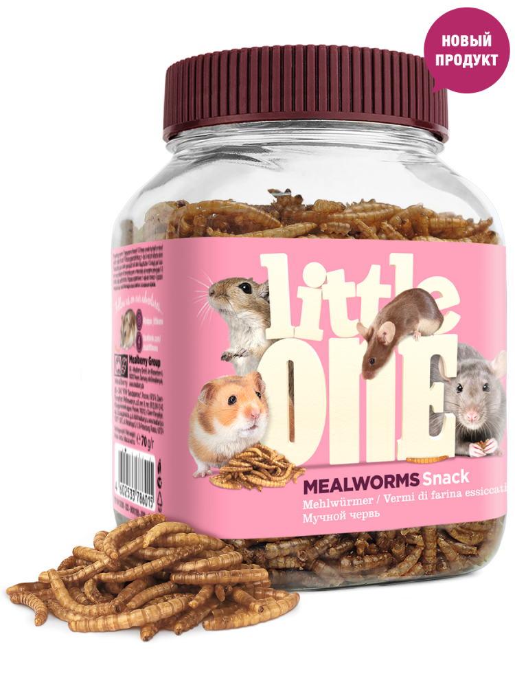 Сушеный мучной червь является питательным дополнительным кормом для всеядных грызунов. Он представляет собой не только их излюбленное лакомство, но и ценный источник необходимого натурального животного белка. Его добавление позволит внести разнообразие в рацион питомца.