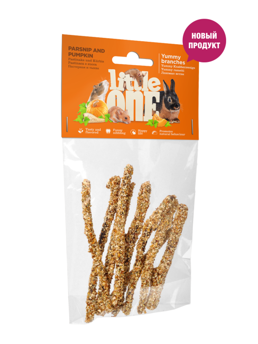 Ветви в обсыпке из пастернака и тыквы станут излюбленным лакомством для грызунов и кроликов, а также полезным дополнением к ежедневному рациону. Стачивая зубы, питомец будет получать ценные витамины и минеральные вещества, содержащиеся в ветвях и овощах.