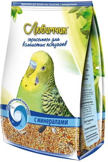 "Любимчик МИНЕРАЛ" корм с добавлением минерального комплекса для волнистых попугаев. Богат минераламиЮ нормализует обмен веществ в организме вашего ЛЮБИМЧИКА.