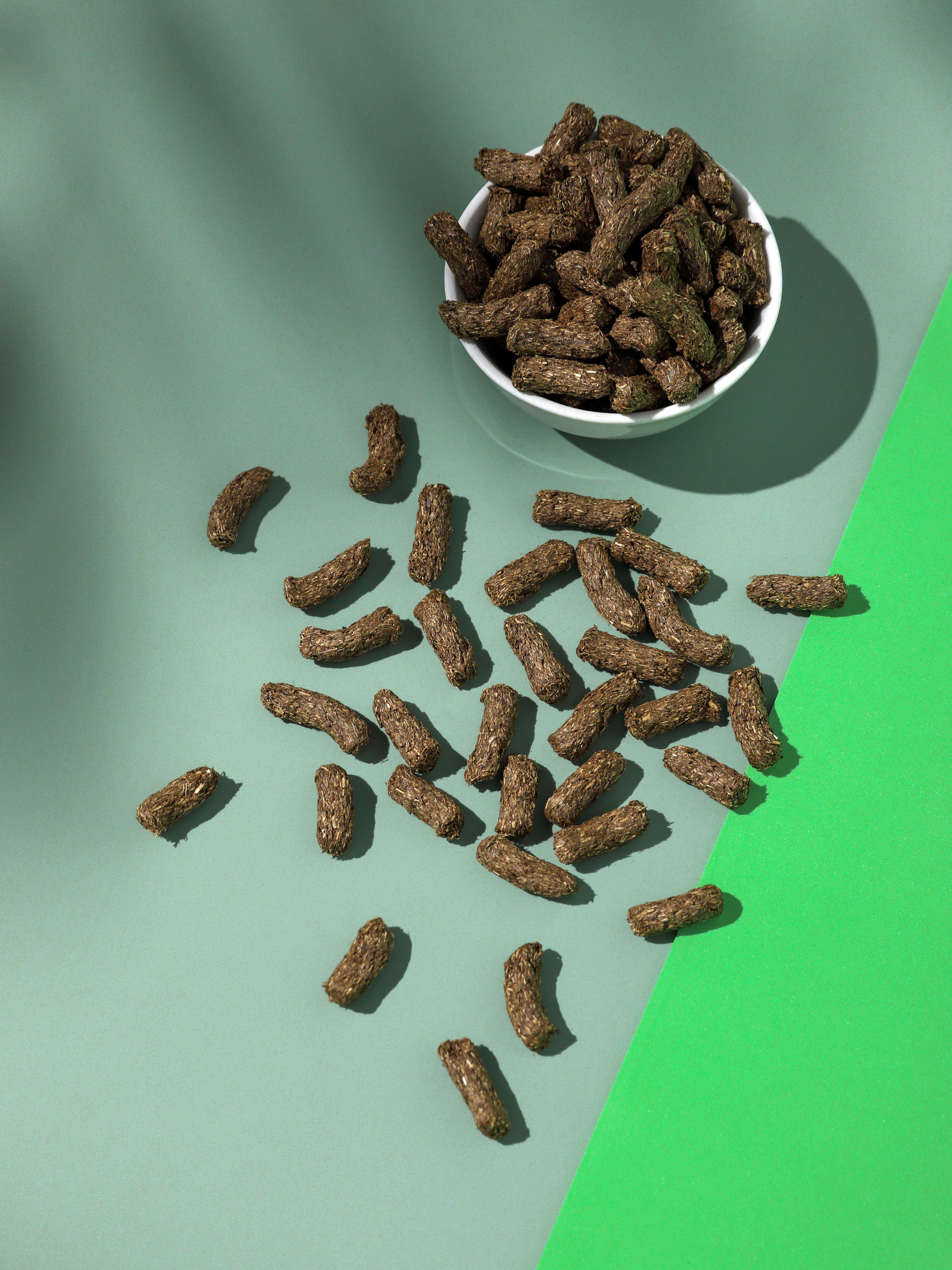 Луговые травы (тимофеевка, райграсс, ежа, клевер луговой) – 66%, семена гречихи (19%), соевый шрот, конопля, лен, пшеничные отруби, порошок цикория, витаминно-минеральный премикс, семена фенхеля, Юкка Шидигера (0,1%), консервант, антиоксидант.