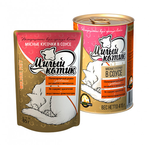Влажный корм для кошек Милый котик «Мясное рагу» в соусе