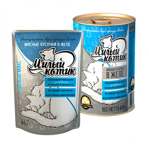 Влажный корм для кошек Милый котик «Рыбный микс» в соусе