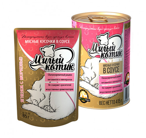 Влажный корм для кошек Милый котик «Ягненок с морковью» в соусе