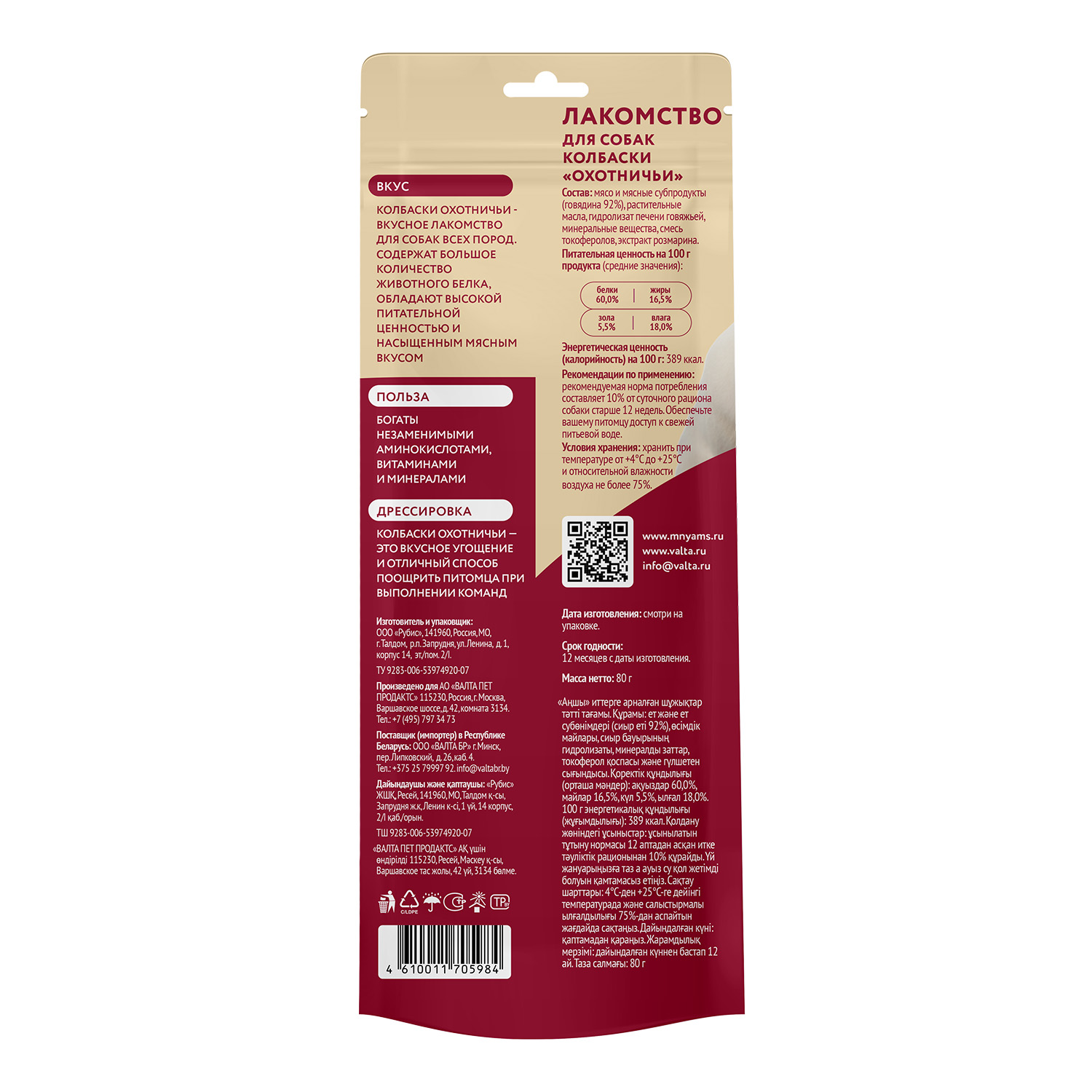Охотничьи колбаски содержат высокое количество белка. Богаты незаменимыми аминокислотами, витаминами и минералами. Обладают высокой питательной ценностью и насыщенным мясным вкусом.