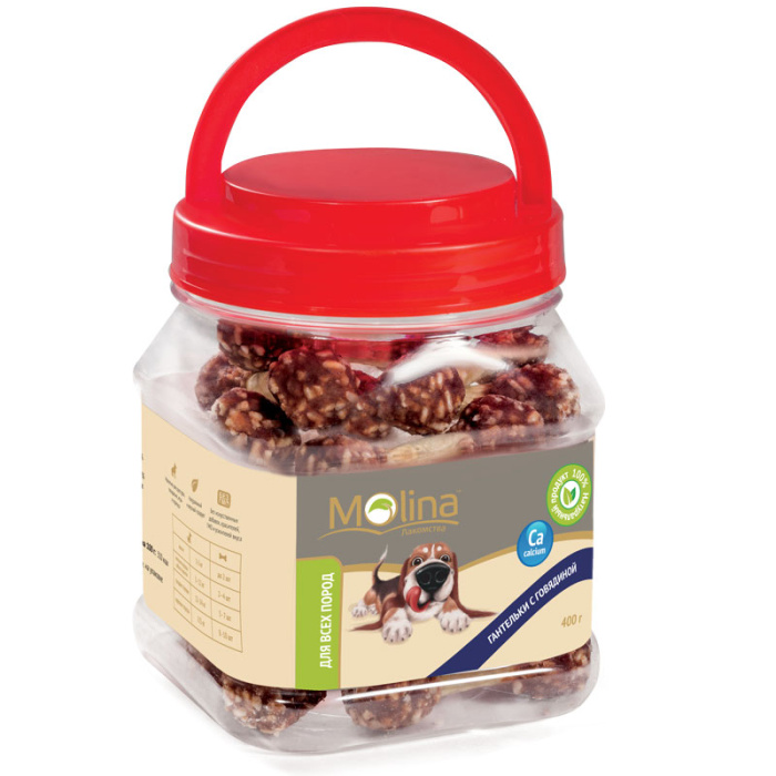 Вяленая говядина и полезная косточка в виде гантелек непременно понравятся вашему питомцу. Лакомство содержит КАЛЬЦИЙ - необходимый для профилактики кариеса и укрепления зубной эмали и костей собаки. Натуральный и вкусный продукт, без искусственных добавок, красителей, ГМО и усилителей вкуса, идеален для поощрения, игры, перекуса и дрессур.