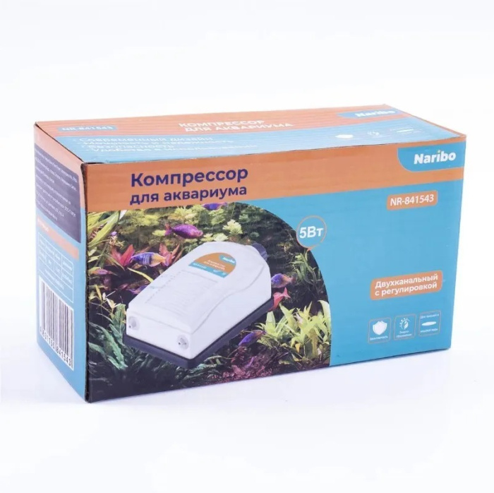 Компрессор для аквариума в картонной коробке. Шланг и распылитель в комплект НЕ входят.