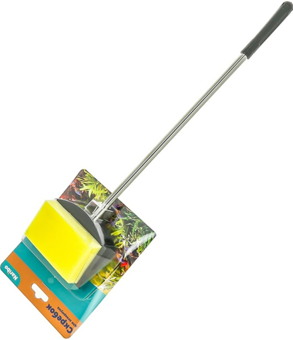 Скребок Naribo 3 в 1 имеет крепкую металлическую ручку длинной 55 сантиметров, очень бюджетную цену, плотную и мягкую губку на конце. Также есть пластиковый скребок, позволяющий избавиться от больших водорослевых наростов с которыми могут не справиться губки.