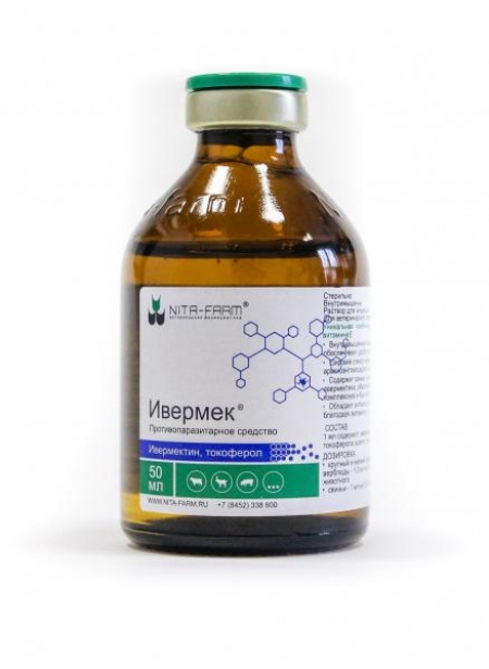 10 мг ивермектина и 40 мг витамина Е, витамин Е (40 мг/мл) и консервант.