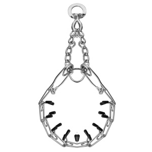 Строгий ошейник-удавка с защитными пластиковыми насадками на шипах - функциональный аксессуар для собак средних и крупных пород и эффективная мера воздействия при длительных прогулках и интенсивной дрессировке. Расположенные внутри ошейника шипы позволяют координировать все действия собаки и держать ее под строгим контролем. При этом пластиковые насадки на шипах защищают кожу питомца от царапин и повреждений. Диаметр проволоки - 3,5мм, длина ошейника - 550мм. Цвет: хром.
