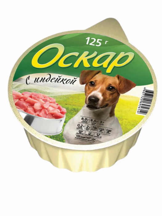 Консервированный корм премиум класса «ОСКАР» для собак всех пород разработан с учётом особенностей питания домашних животных при участии ведущих заводчиков и ветеринаров. Серия абсолютно натуральных консервов содержит все необходимые питательные компоненты, витамины и минералы, необходимые для сбалансированного питания собаки каждый день. Консервы для собак «ОСКАР» - это мясной корм для собак от 3 месяцев, изготовленный из натурального Российского мясного сырья. Рубленная формула, используемая в консервах ОСКАР является для собаки очень привлекательной. Товар сертифицирован.
