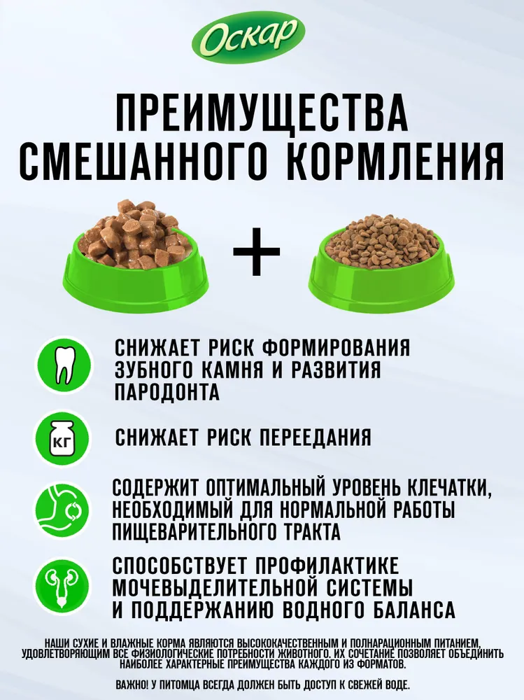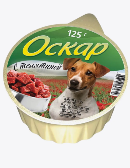 Консервированный корм премиум класса «ОСКАР» для собак всех пород разработан с учётом особенностей питания домашних животных при участии ведущих заводчиков и ветеринаров. Серия абсолютно натуральных консервов содержит все необходимые питательные компоненты, витамины и минералы, необходимые для сбалансированного питания собаки каждый день. Консервы для собак «ОСКАР» - это мясной корм для собак от 3 месяцев, изготовленный из натурального Российского мясного сырья. Рубленная формула, используемая в консервах ОСКАР является для собаки очень привлекательной. Товар сертифицирован.
