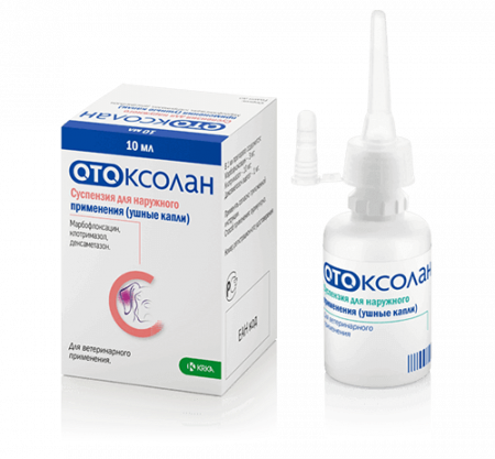 Отоксолан относится к комбинированным препаратам, обладающим противомикробным, противогрибковым и противовоспалительным действием. Благодаря комбинации активных компонентов с разным механизмом действия, препарат обладает широким спектром антибактериальной и фунгицидной активности, оказывает противовоспалительное действие в очаге поражения. Марбофлоксацин, входящий в состав препарата, относится к соединениям группы фторхинолонов, активен в отношении грамотрицательных и грамположительных микроорганизмов, в том числе Staphylococcus intermedius, Pseudomonas aeruginosa, Escherichia coli и Proteus mirabilis, не действует на анаэробы. Механизм действия марбофлоксацина заключается в ингибировании синтеза ДНК микроорганизмов.