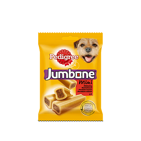 Кальций в составе Jumbone Mini от PEDIGREE® служит для укрепления костей и зубов, омега-3 помогает сохранять шерсть здоровой, витамины и минералы поддерживают природную защиту организма.