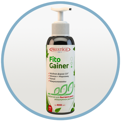 Fito Gainer – Комплекс незаменимых элементов питания для растений. Содержит в своем составе углерод в жидкой форме (CO2), калий, железо, марганец и целый ряд дополнительных микроэлементов, которые в полной мере удовлетворяют потребность аквариумных растений.
