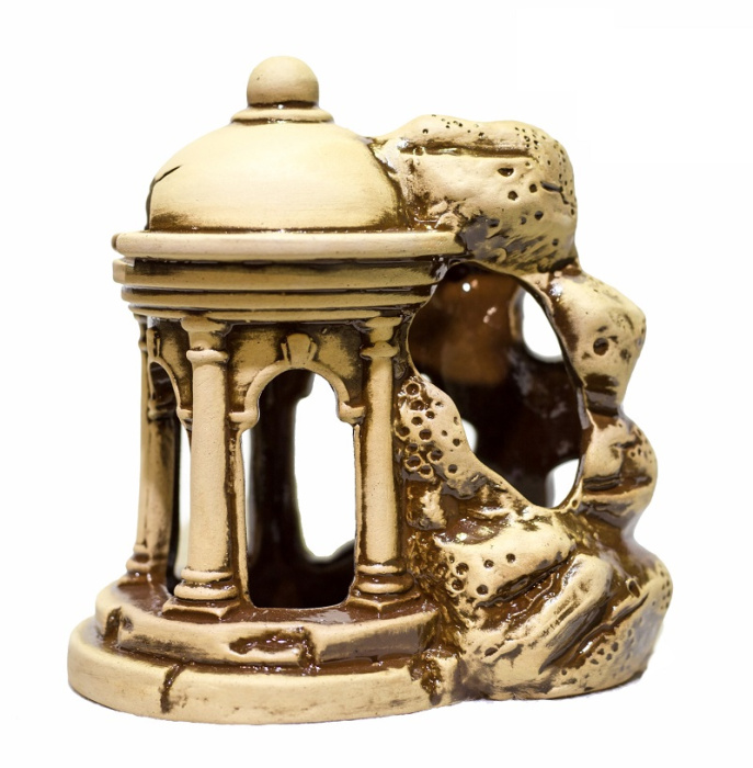 Беседка в скале отлично подойдёт для оформления аквариума как с пресной, так и с морской водой. Также, возможно использовать декорацию не только в аквариумах, а также в террариумах и фитодизайне.
