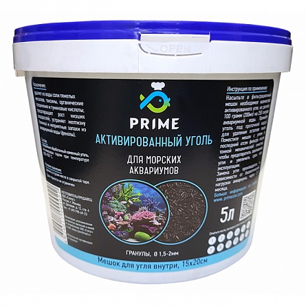 Активированный уголь Prime для морских аквариумов изготовлен каменного угля. Уголь активирован паром при температуре 850-950°С. Предназначен для удаления из воды солей тяжелых металлов, токсинов, органических соединений и гуминовых кислот; предотвращает рост низших водорослей; устраняет желтизну (танины) и неприятные запахи из аквариумной воды (фенолы). Подходит для морских и пресноводных аквариумов. Рекомендуемый расход — от 50 грамм на 100 литров аквариумной воды. Периодичность замены — от одного до трех месяцев, в зависимости от биологической загруженности аквариума и объема заложенного угля. Мешок для закладки угля в фильтр или в аквариум в комплекте.