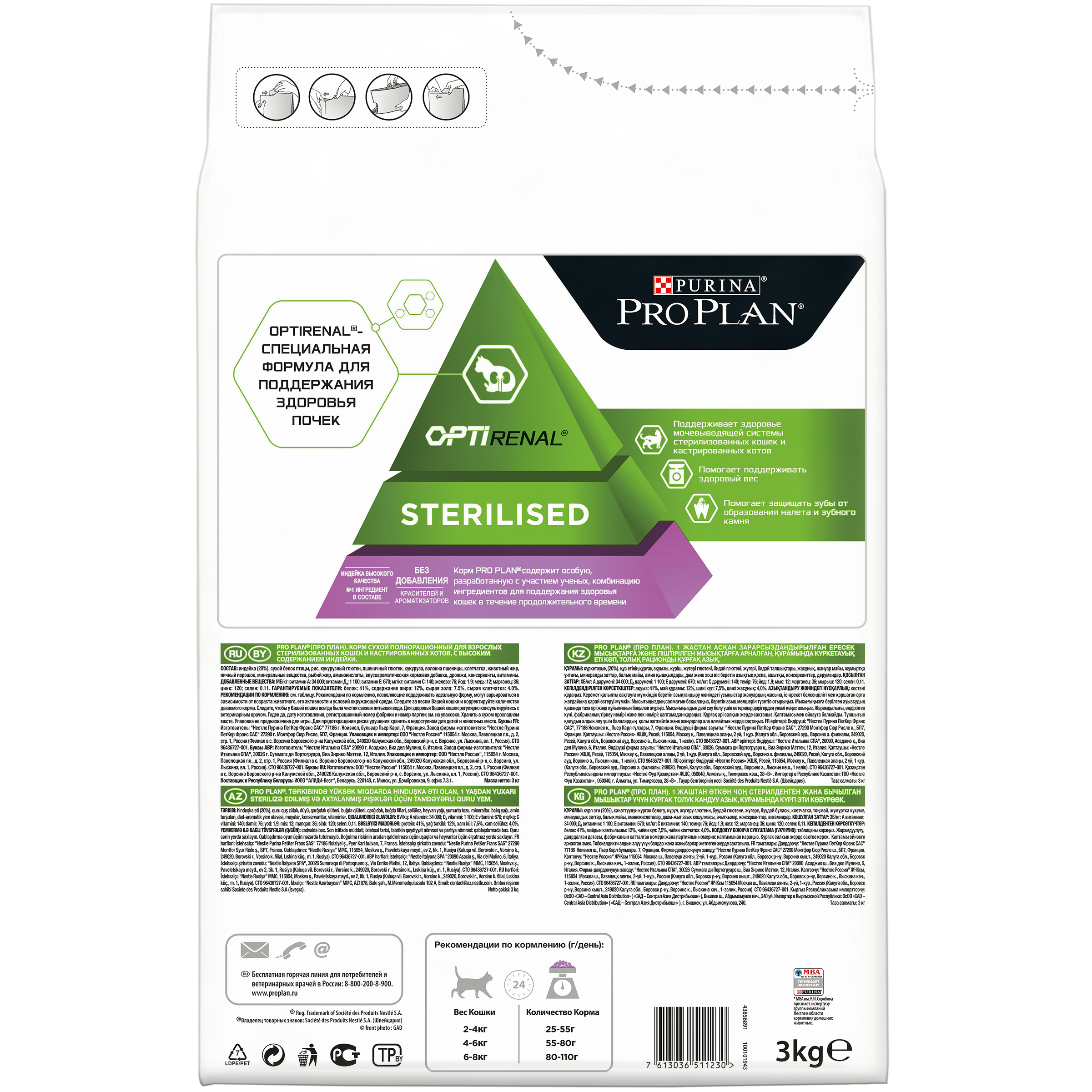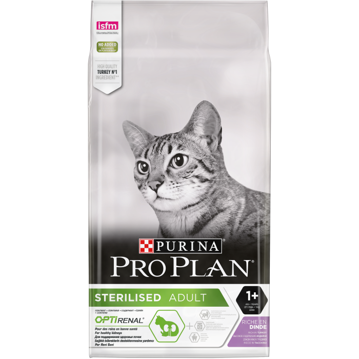 Для поддержания здоровья стерилизованных кошек. PRO PLAN® Sterilised сочетает все основные питательные вещества, включая витамины A, C и E и жирные кислоты омега-3 и омега-6, в богатой белками, нежирной рецептуре, которая также помогает обеспечить сбалансированный уровень pH мочи.
