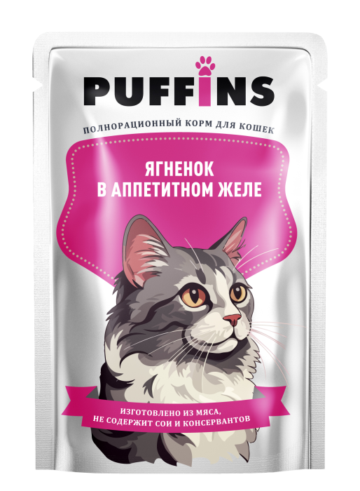 Корм для кошек влажный Puffins «Ягненок» — идеальное питание для вашего питомца с натуральным составом, без искусственных добавок и консервантов, которые могут вызвать аллергию или проблемы с пищеварением у питомцев с повышенной чувствительностью. Сбалансированный рацион разработан с учетом всех физиологических потребностей кошек, обеспечивая полноценное питание.