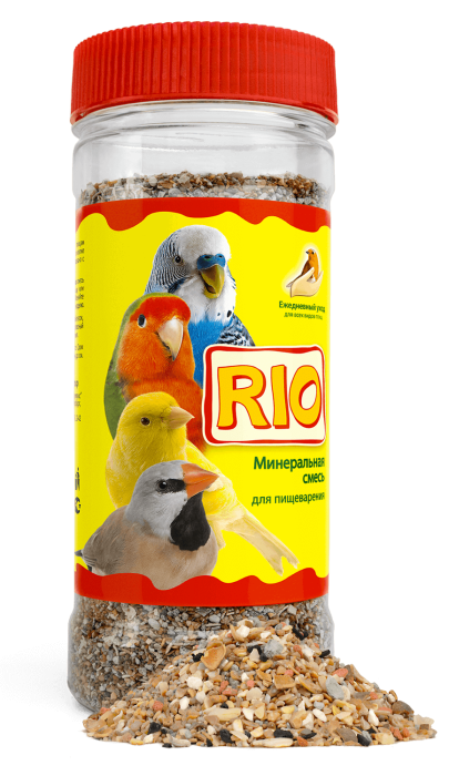 Помимо основного корма птицам необходимо постоянное наличие в клетке минеральной смеси, что связано с особенностями пищеварения птиц. Минеральная смесь RIO содержит неорганические и органические компоненты, которые выполняют функцию гастролитов, помогая «перемалывать» твердые семена в мускульном желудке птиц. Минеральная смесь RIO служит дополнительным источником кальция, фосфора, натрия и других минеральных веществ.