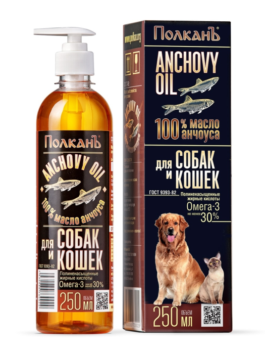 · масло анчоуса низкокалорийное, поэтому идеально подходит для собак с лишним весом и пожилых собак;
