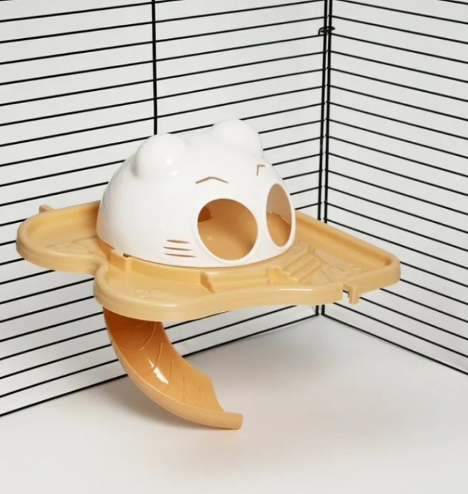 Домик с горкой, который обеспечит активное времяпровождение, что важно для крепкого здоровья и долголетия маленьких питомцев. Такие конструкции забавляют их и заставляют двигаться.