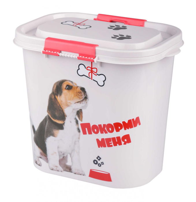 Контейнер 10л из коллекции «Дружок» предназначен для хранения корма домашнего питомца. Это незаменимая вещь, если Вы не любите хранить сухие корма в мешках, которые могут случайно просыпать содержимое или вовсе порваться. Контейнер изготовлен из качественного пищевого пластика, который абсолютно безопасен для здоровья животного. Благодаря плотно закрывающейся крышке контейнер сохранит все качества и предотвратит обветривание корма, а также распространение запаха содержимого в вашем доме. Изделие выполнено с аппликацией щенка на стенках, сверху имеются специальные защелки. Контейнер имеет компактную форму, что позволит хранить его в любом уголке Вашего дома.