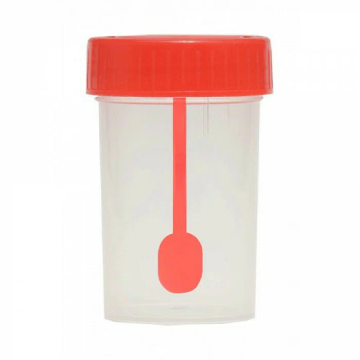 Контейнер для сбора кала изготовлен из ультрачистого полипропилена или прозрачного медицинского полистирола, оба материала являются химически нейтральными и бактериально чистыми и механически устойчивыми веществами. В крышку контейнера для сбора кала вделана лопатка (ложка) - отборник (30 мл) или шпатель (60 мл) - для удобства взятия материала.