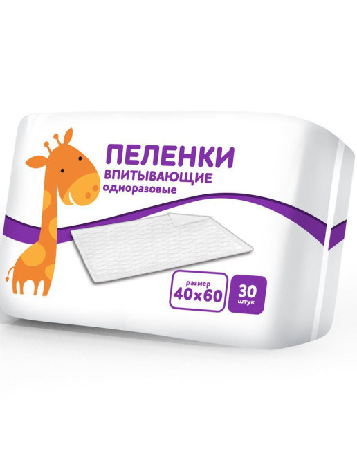 Пеленки впитывающие одноразовые универсальные серии "Жираф". Гипоаллергенный мягкий нетканный материал, абсорбирующий (впитывающий) тампон из распушенной целлюлозы, нетоксичный полиэтилен, обеспечивающий влагонепроницаемость. Не подлежит обязательной сертификации. Дата производства указывается на упаковке/Срок годности 5 лет / Хранить в сухом месте.