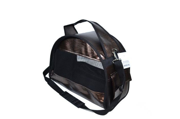 Сумка-переноска из искусственной лакированной кожи с тиснением «под крокодила». Сумка предназначена как для кошек, так и для собак мелких пород. Благодаря