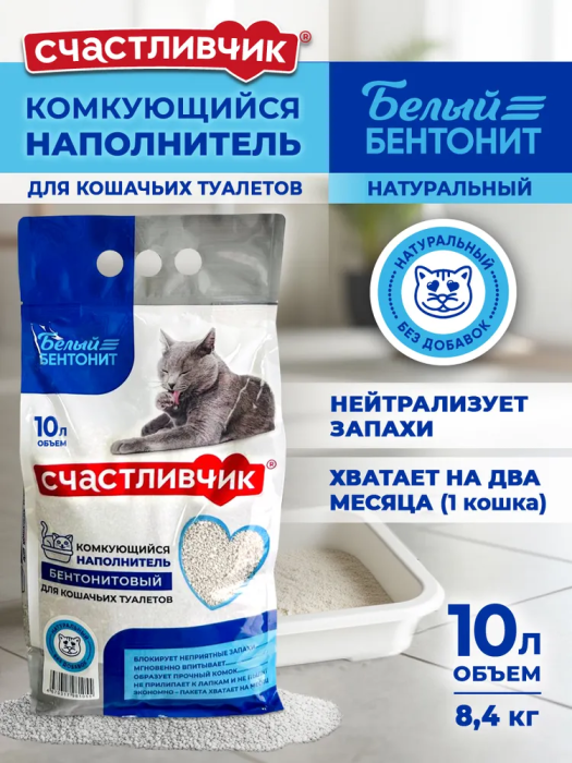 Идеальная чистота без раздражителей на долгое время! Наполнитель "Счастливчик" Натуральный в большой экономичной упаковке 10 л создан для самых требовательных питомцев. Без отдушек и добавок, он подходит для котят, аллергиков и кошек с чувствительным обонянием. Натуральная белая бентонитовая глина моментально впитывает влагу, образуя плотный комок, и эффективно блокирует запахи. Не пылит и не прилипает к лапкам. Экономичный расход – одной упаковки хватит на 2 месяца для одного питомца!
