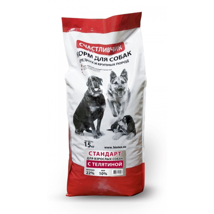 рецептура кормов «Счастливчик» отлично подходит для собак средних и крупных пород – любители собак будут довольны внешним видом и здоровьем своих питомцев