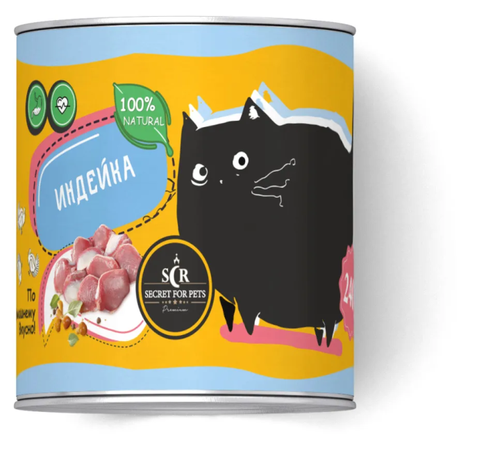 Мясо индейки, субпродукты мясные, желирующая добавка, таурин, растительное масло, злаки, соль, вода