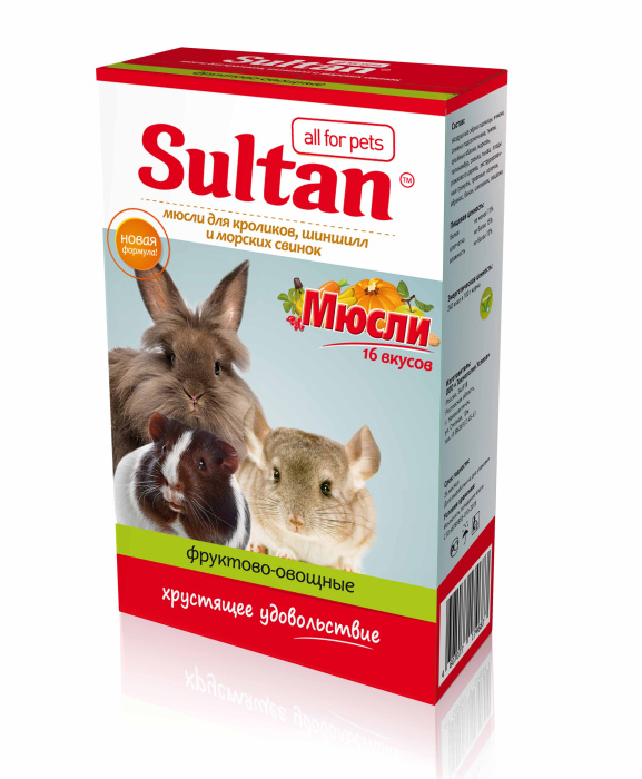 Мюсли “Sultan” для кроликов, шиншилл и морских свинок – это вкусное, хрустящее дополнение к основному рациону, которым Вы сможете побаловать своего питомца.