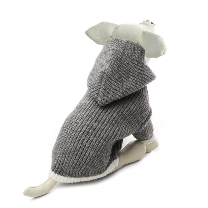 Свитер оригинальной вязки - это удобный и функциональный аксессуар для собак, который просто незаменим в холодную погоду. Изделие защитит вашего питомца от ветра и согреет в непогоду, а универсальный фасон не будет стеснять движений питомца во время прогулки. Такой свитер со стильным дизайном станет украшением гардероба вашего питомца. Материал: акрил. Цвет: серый. Размер: 30см (М).