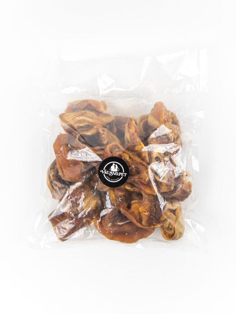 Ухо свиное — любимое жевательное лакомство почти всех собак. Для мелких пород лучше подойдут резаные уши.