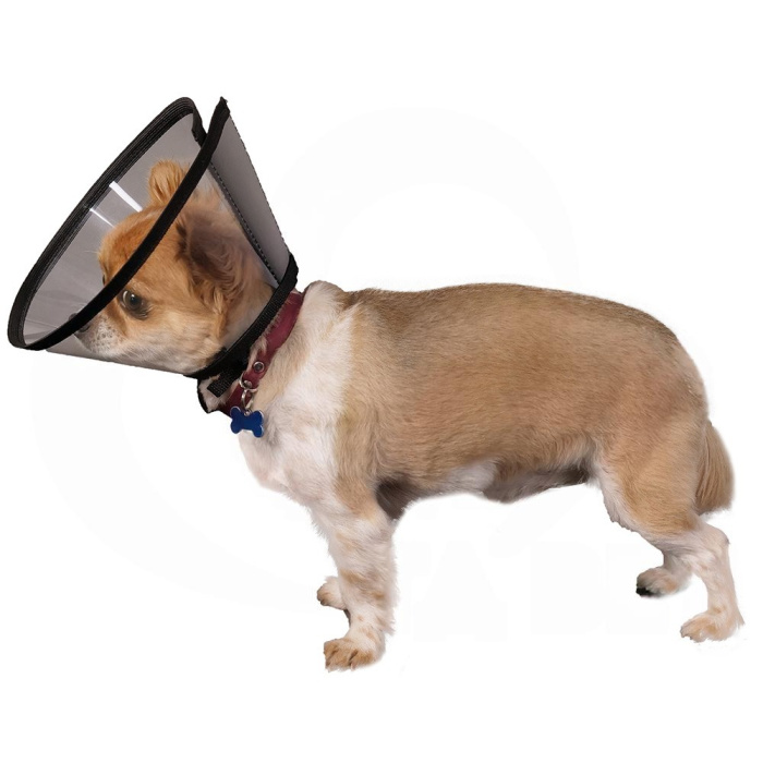 Защитный воротник предназначен для в период реабилитации после травмы или операций. Ограничивает доступ животного к заживающей ране или операционному шву.