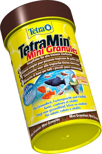 Tetra Min Mini Granules - основной, сбалансированный корм в гранулах для небольших декоративных рыбок, например неоны, тетры, живородящие и др. Корм медленно опускается на дно аквариума и тем самым обеспечивает питание рыб в разных слоях аквариума.