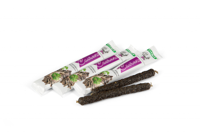 Колбаски для собак Бифф Салямка. Изготовлены из говяжьего мяса и мясных субпродуктов по колбасной технологии с добавлением таких полезных компонентов, как кукуруза и бараний рубец. Натуральный продукт, который не содержит красителей и консервантов.