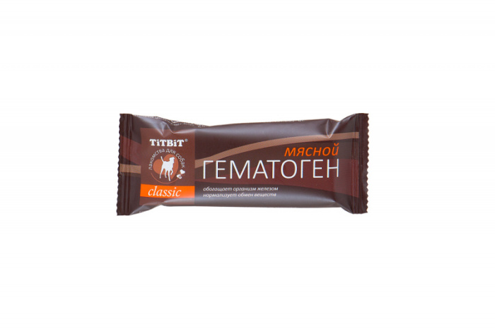 Гематоген мясной classic - это профилактическое лакомство для собак. Разработано на основе классической рецептуры гематогена с учетом физиологических особенностей животных. Стимулирует образование эритроцитов (красных кровяных телец); повышает содержание гемоглобина в крови; обогащает организм железом; нормализует обмен веществ; содержит белки, жиры и углеводы в легкоусвояемой форме; рекомендуется включать в рацион ослабленных и перенесших операции собак. Не содержит сахара.