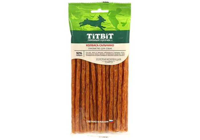Золотая коллекция – это линейка лучших лакомств TITBIT, разработанных при участии владельцев домашних животных и их питомцев. Колбаса «Сальчино» приготовлена из говядины и дополнена щепоткой фенхеля, придающего изысканность нежному вкусу. Колбаса «Сальчино» приготовлена из говядины и дополнена щепоткой фенхеля.