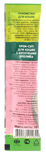 Мясо кролика, мясной бульон, морковь, петрушка, таурин, желеобразователь, вода