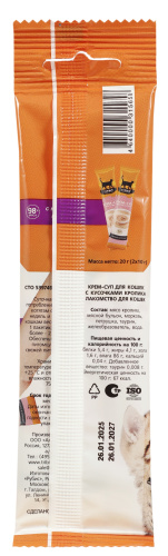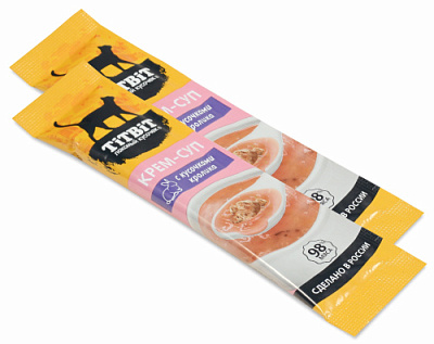 Крем-суп для кошек TITBIT – это специально разработанные вкусные и полезные продукты, которые: 1. Содержат кусочки свежего мяса; 2. Содержат 98% мясных ингредиентов; 3. Содержат дополнительные полезные ингредиенты (таурин для поддержки зрения, сердца, пищеварительной, половой и иммунной систем; морковь для поддержки зрения и пищеварения; петрушка для поддержки мочеполовой, сердечно-сосудистой и пищеварительной систем).