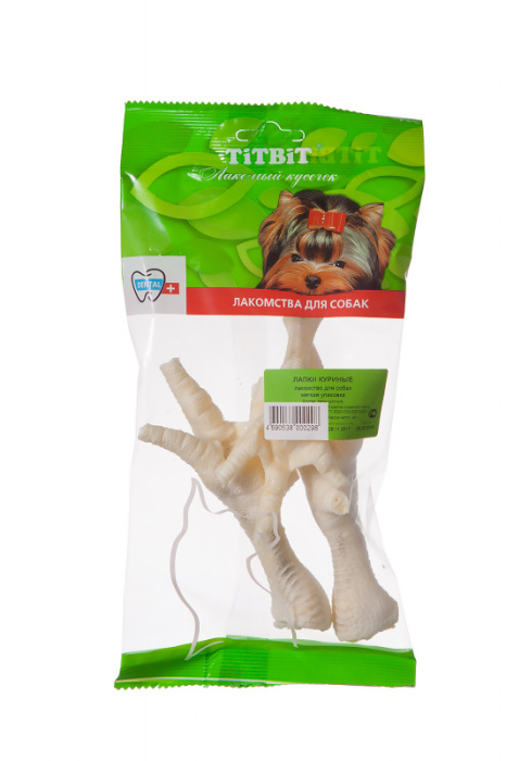 Высушенные куриные лапки. Высокое содержание хрящевой и соединительной ткани. Обеспечивает дополнительное поступление в организм необходимых элементов для роста, развития и поддержания в норме суставов. Привлекательное лакомство для собак мелких пород, используется как игрушка, отлично очищает зубы и массирует десны. Применять с осторожностью для собак с аллергией на куриный белок. Изделие содержит трубчатую кость и не предназначено для полного поедания. Как только собака съела футляр из кожи, сухожилий и мышц – необходимо заменить лакомство на новое.