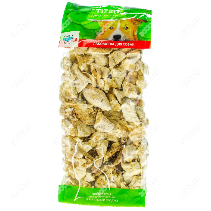 Кусочки сушеного легкого от TiTBIT - вкусное ежедневное угощение для домашних питомцев. Лакомство отлично подходит для дрессировки, поощрения при активных совместных играх и конечно просто порадовать своего хвостатого друга.