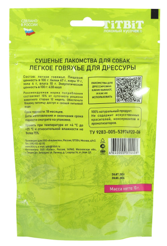 Мелко порезанные кусочки высушенного говяжьего легкого. Высокое содержание микроэлементов и соединительной ткани дополняет удовольствие собаки от нежного лакомства. Легкие очень вкусны, малокалорийны и замечательно усваиваются организмом. Легкие содержат практически такой же набор витаминов, как и мясо, но зато гораздо менее жирные. Оказывают положительное воздействие на состояние кожи, шерсти и общий обмен веществ. Кусочки очень удобно использовать в качестве поощрения при дрессуре, и просто на прогулках. Для собак всех пород и возрастов. Особенно рекомендуется для собак с неполной зубной формулой и возрастными изменениями зубочелюстного аппарата. Благодаря вкусовым качествам и воздушной структуре является одним из самых любимых лакомств для наших четвероногих друзей.